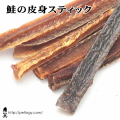鮭の身を皮ごとスティック状にカットしてジャーキーにしました。スティックにすることで手に持って与えられるようになり、ワンちゃん達とのコミュニケーション力がよりUPします。